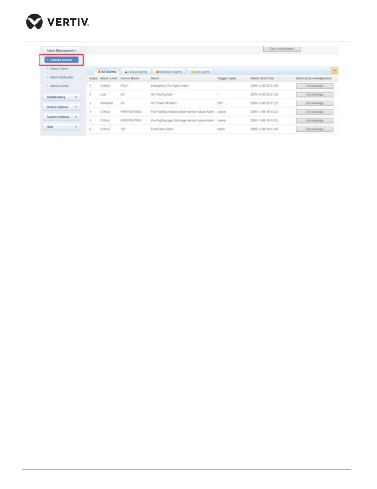 4.2.4.5.1. Current Alarms