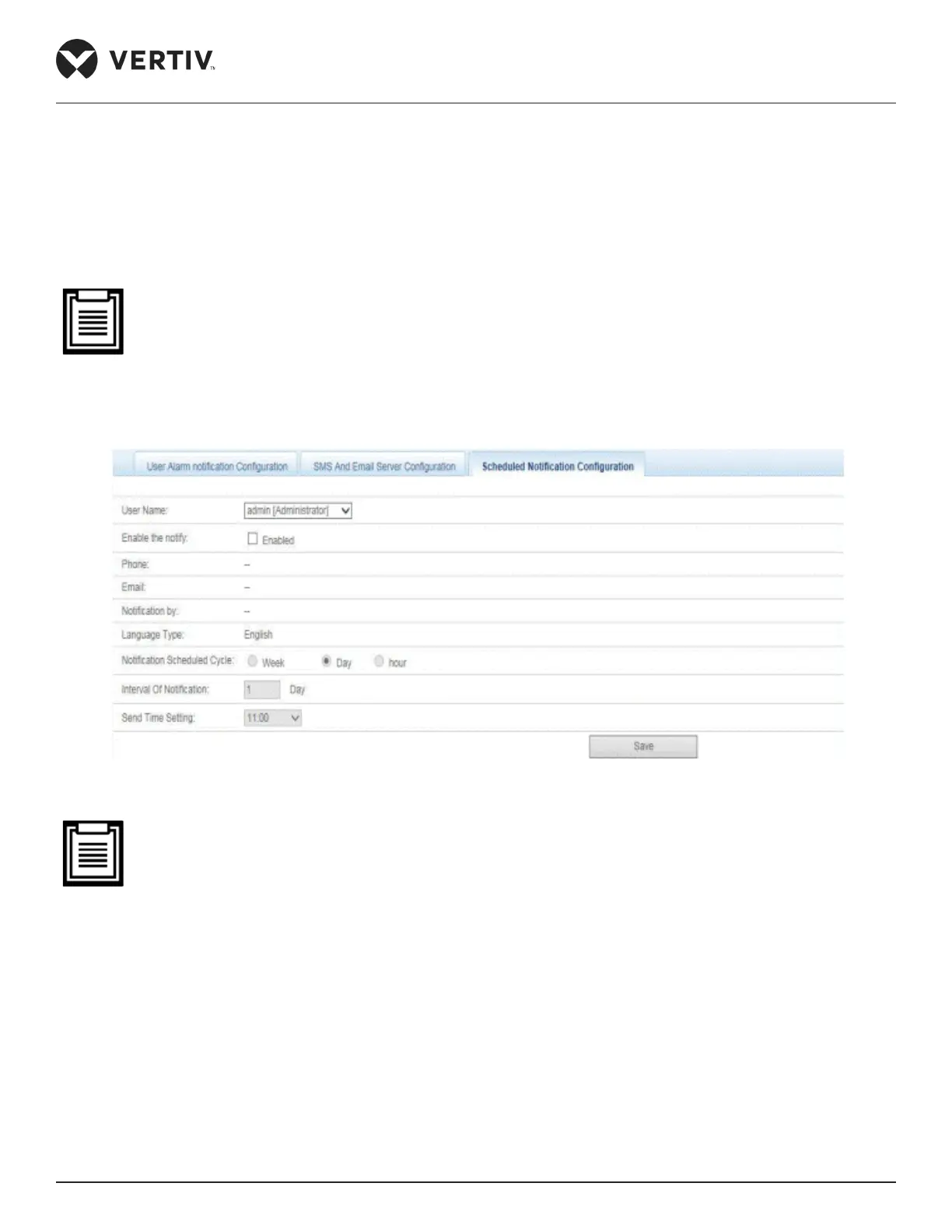 • Scheduled Notication Conguration must be used in conjunction with the Alarm notication congu-
