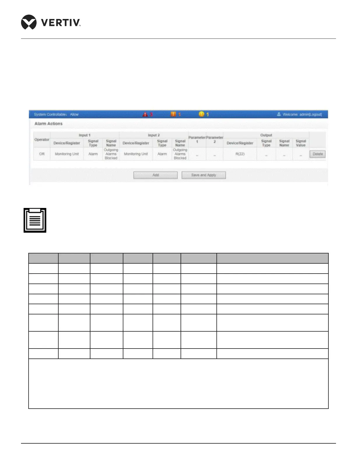 • The operator usage in the Alarm linkage expressions are explained in Table 4-4.