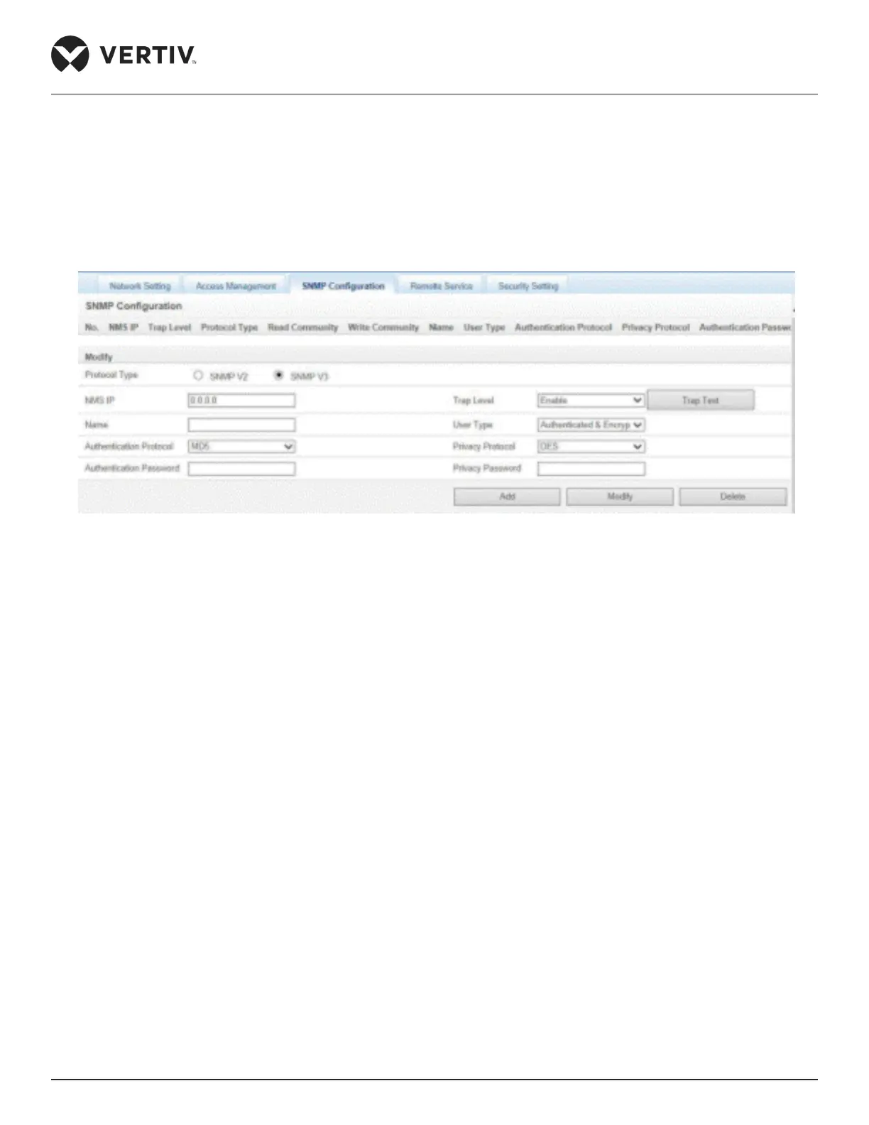 » Select the Privacy Protocol (DES is the only protocol allowed as of now).