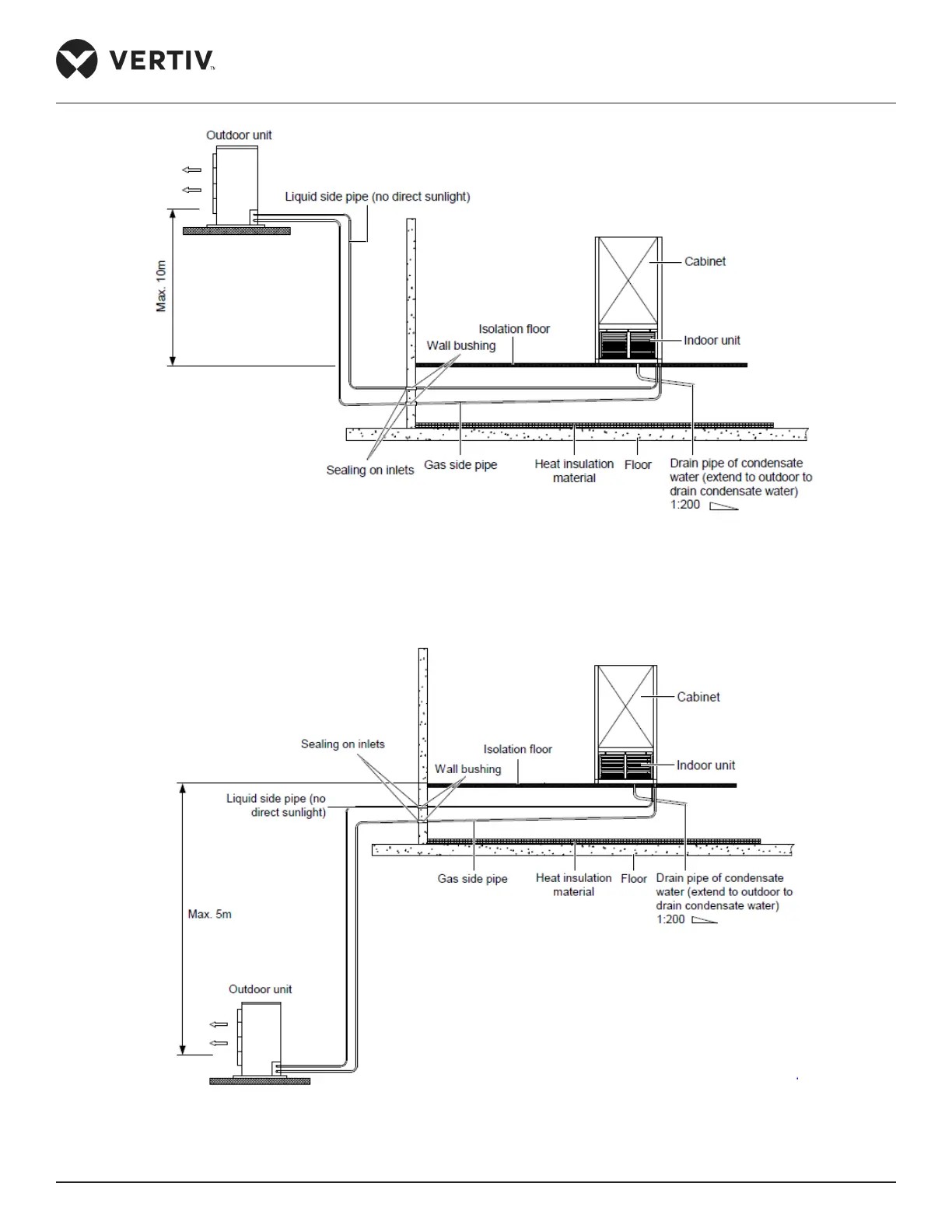 Figure 2-21 shows the scenario where the outdoor unit is installed lower than the indoor unit: