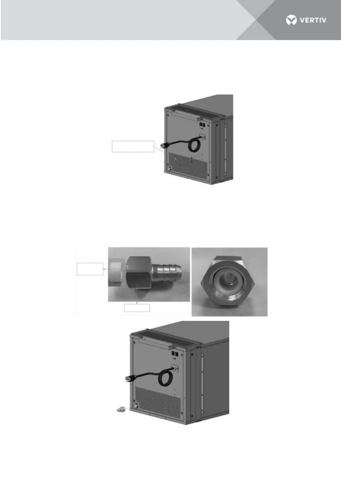 Fasten the drain fitting to the drain port of the VRC1 unit. The drain fitting contains a sealing block, which