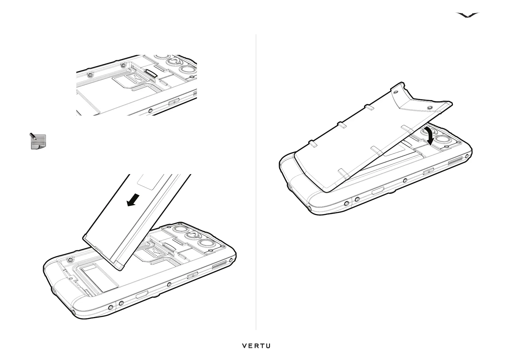 Place the two tangs at the base of the back cover in their corresponding slots in the