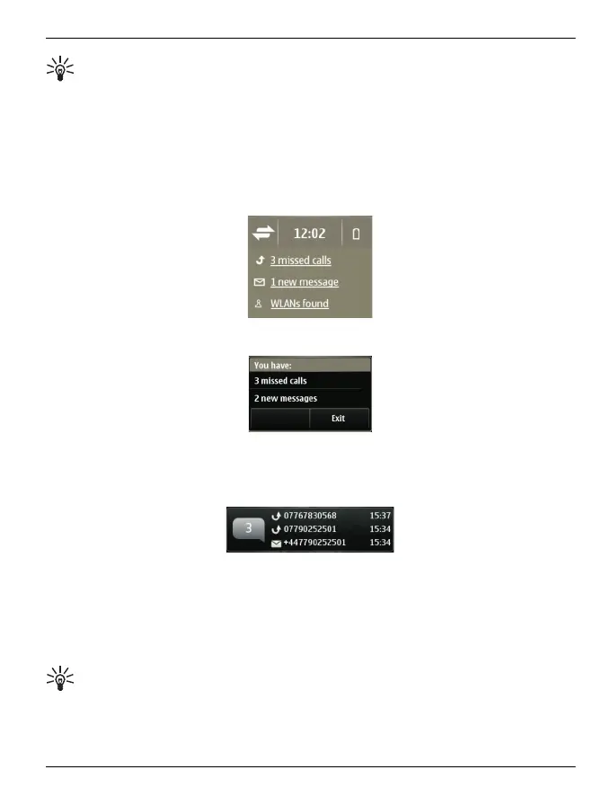 corner of the screen. It displays events such as available WLANs, missed calls, and