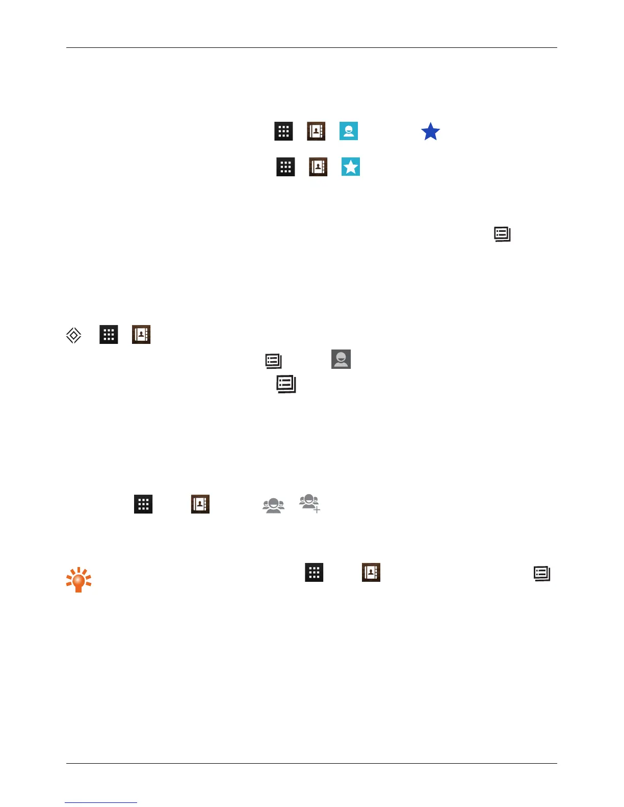 To mark a contact as a favourite, touch > > > a contact > . The star changes from