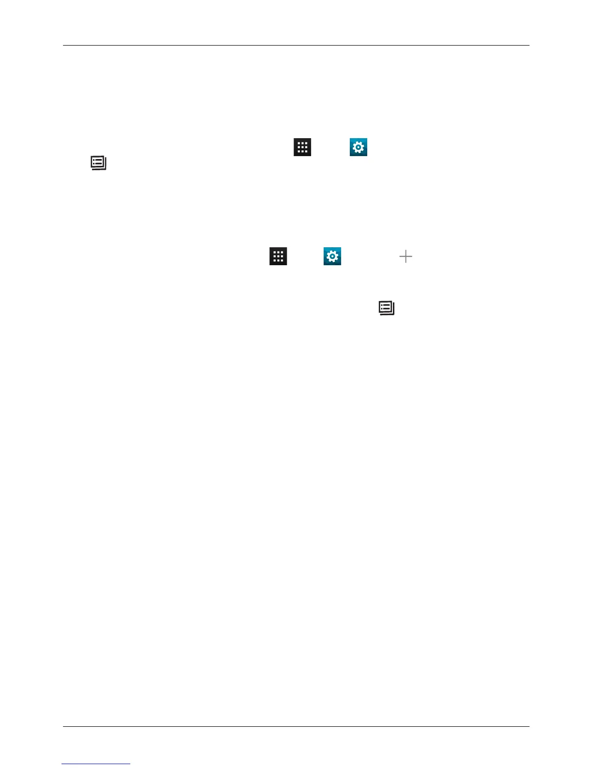 To add accounts, from the home screen, touch Apps > Settings> Add account. Some