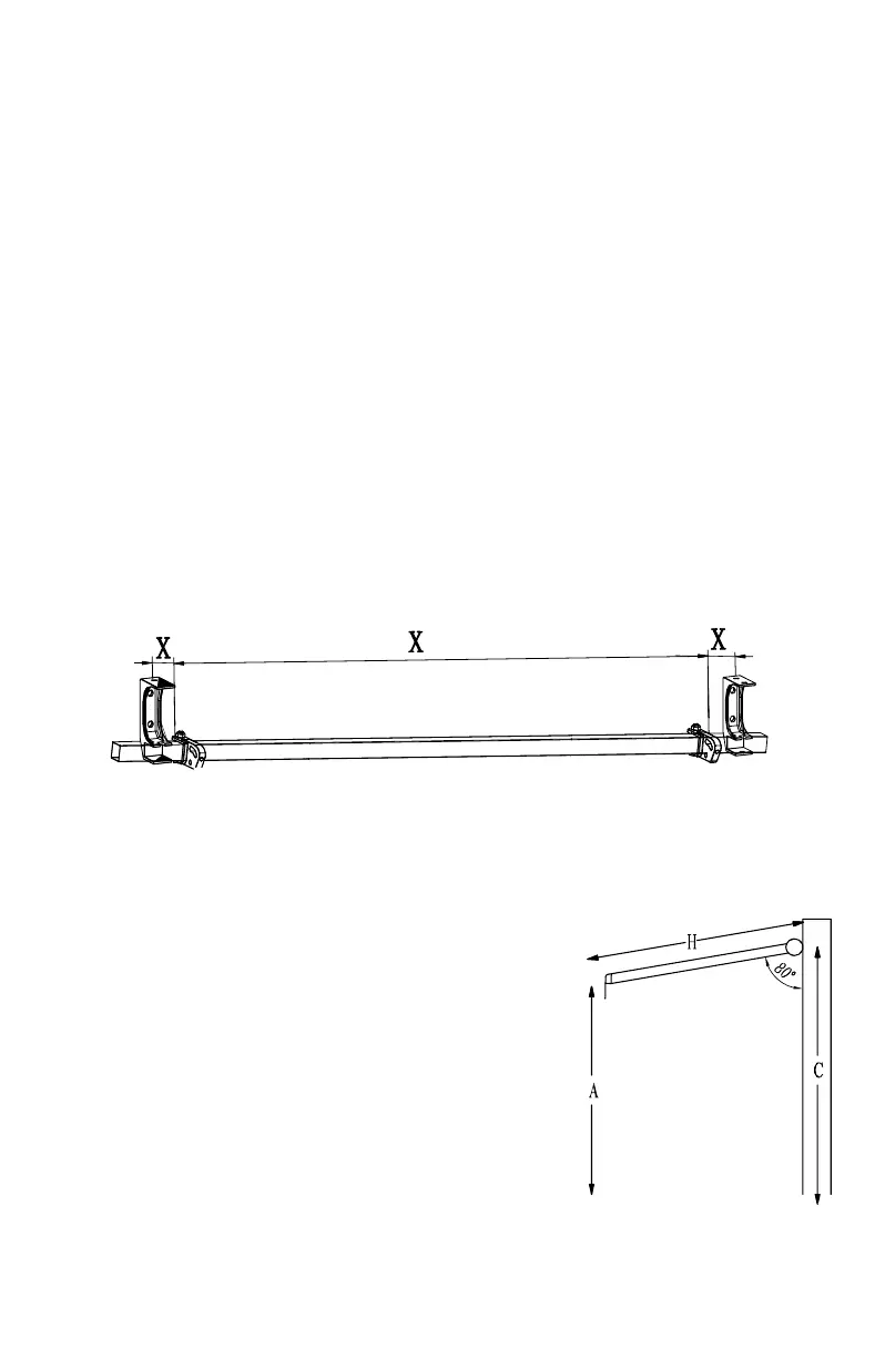 l’auvent à un angle de 80° avec le mur lorsque l’auvent est ouvert. Pour déterminer