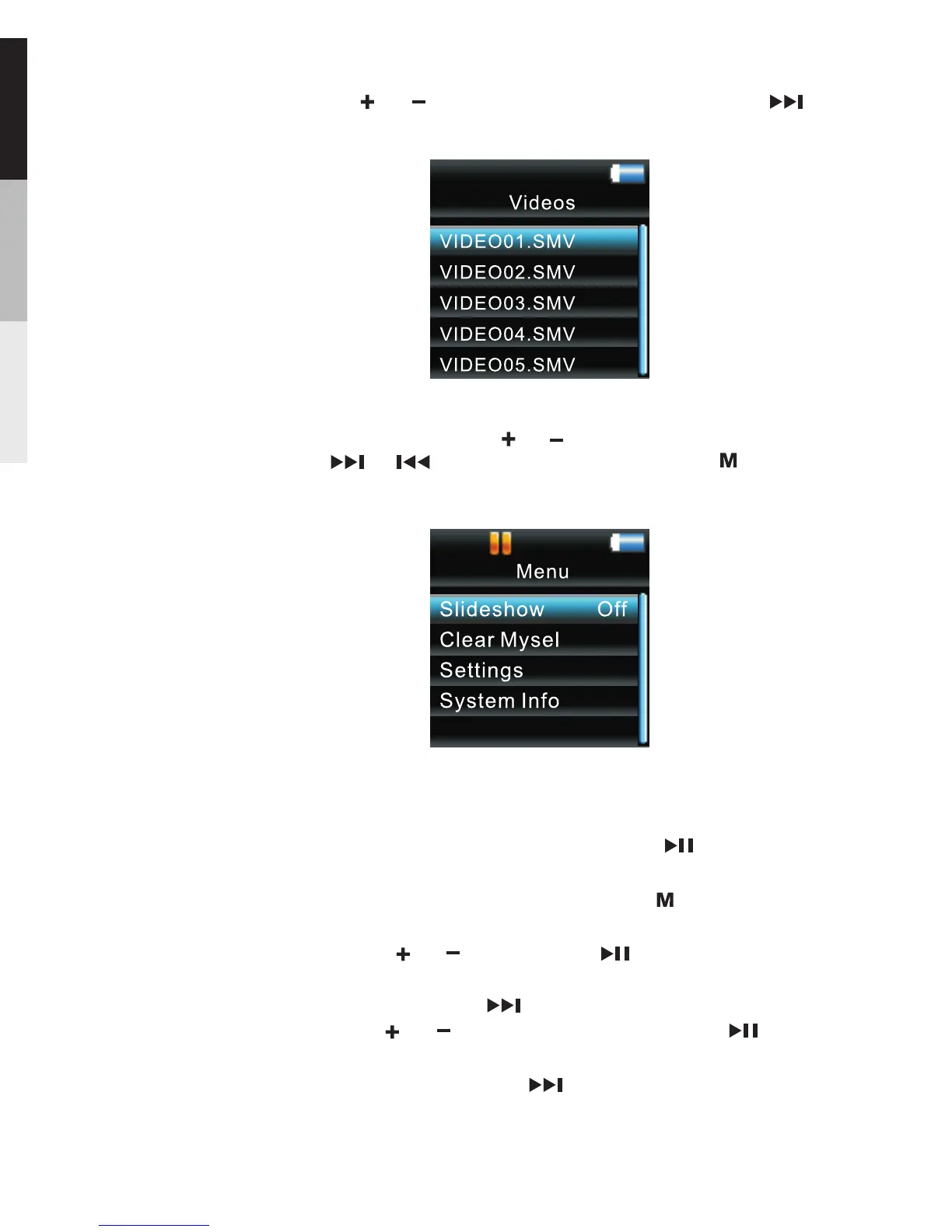 each picture during a slideshow. Press repeatedly to