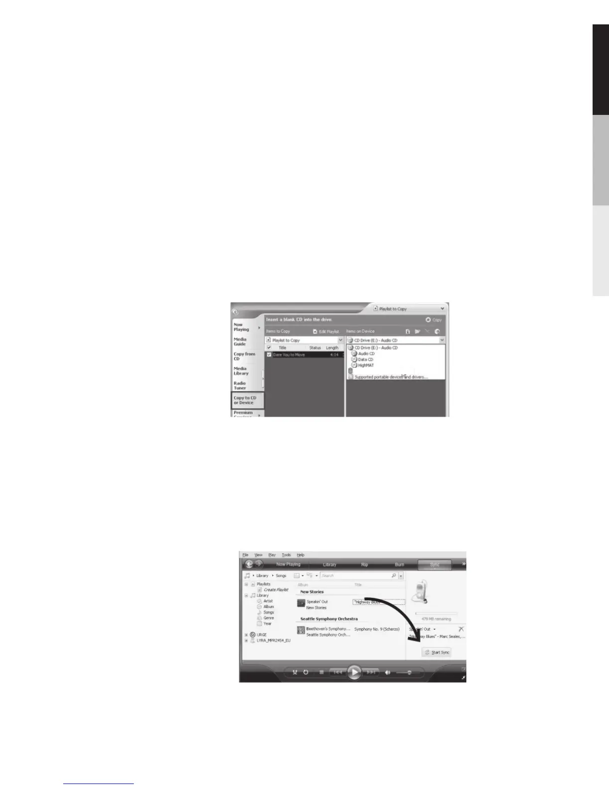 1 In Windows Media® Player, click the Sync tab.