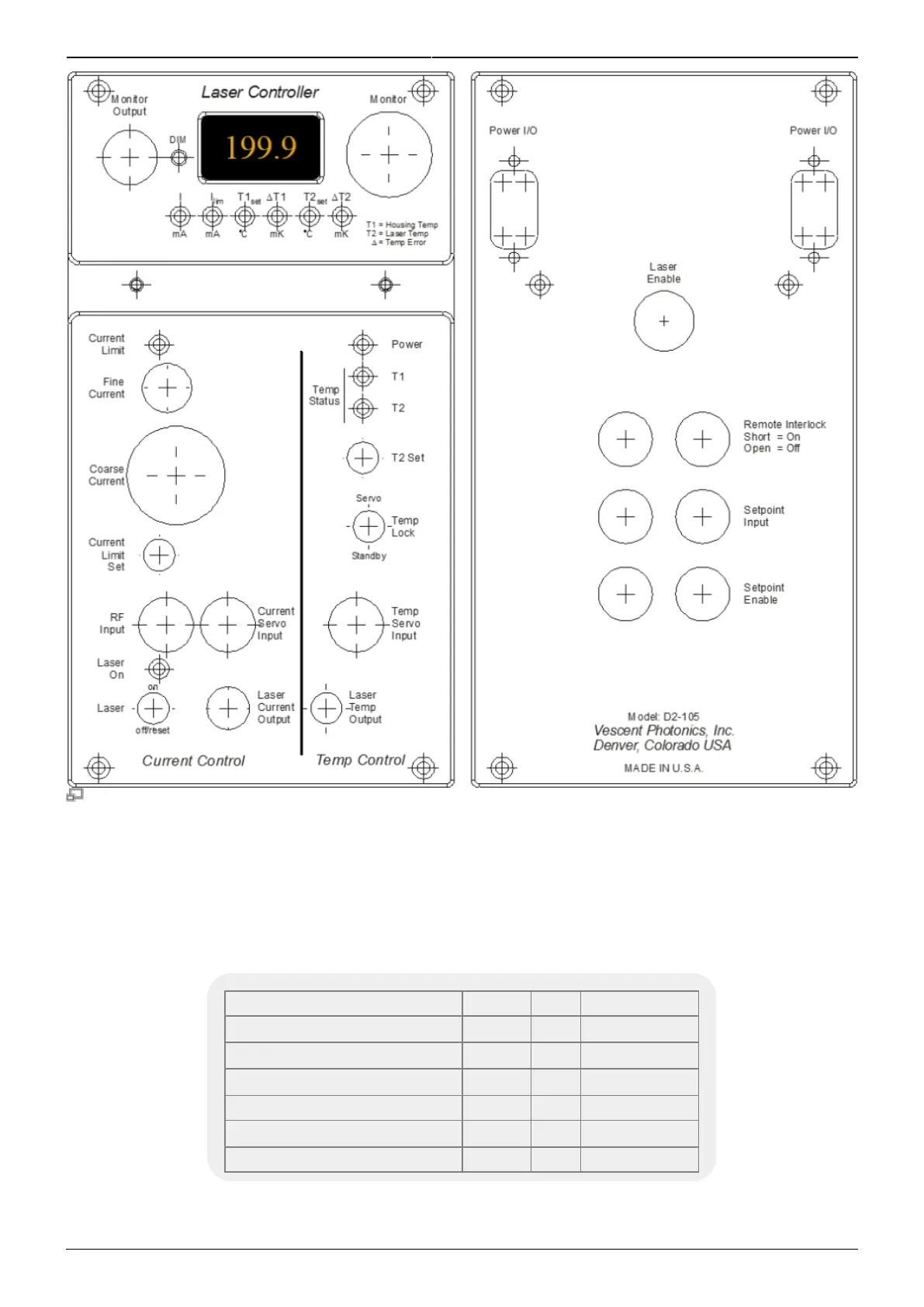 Front and Back Panel of D2-105