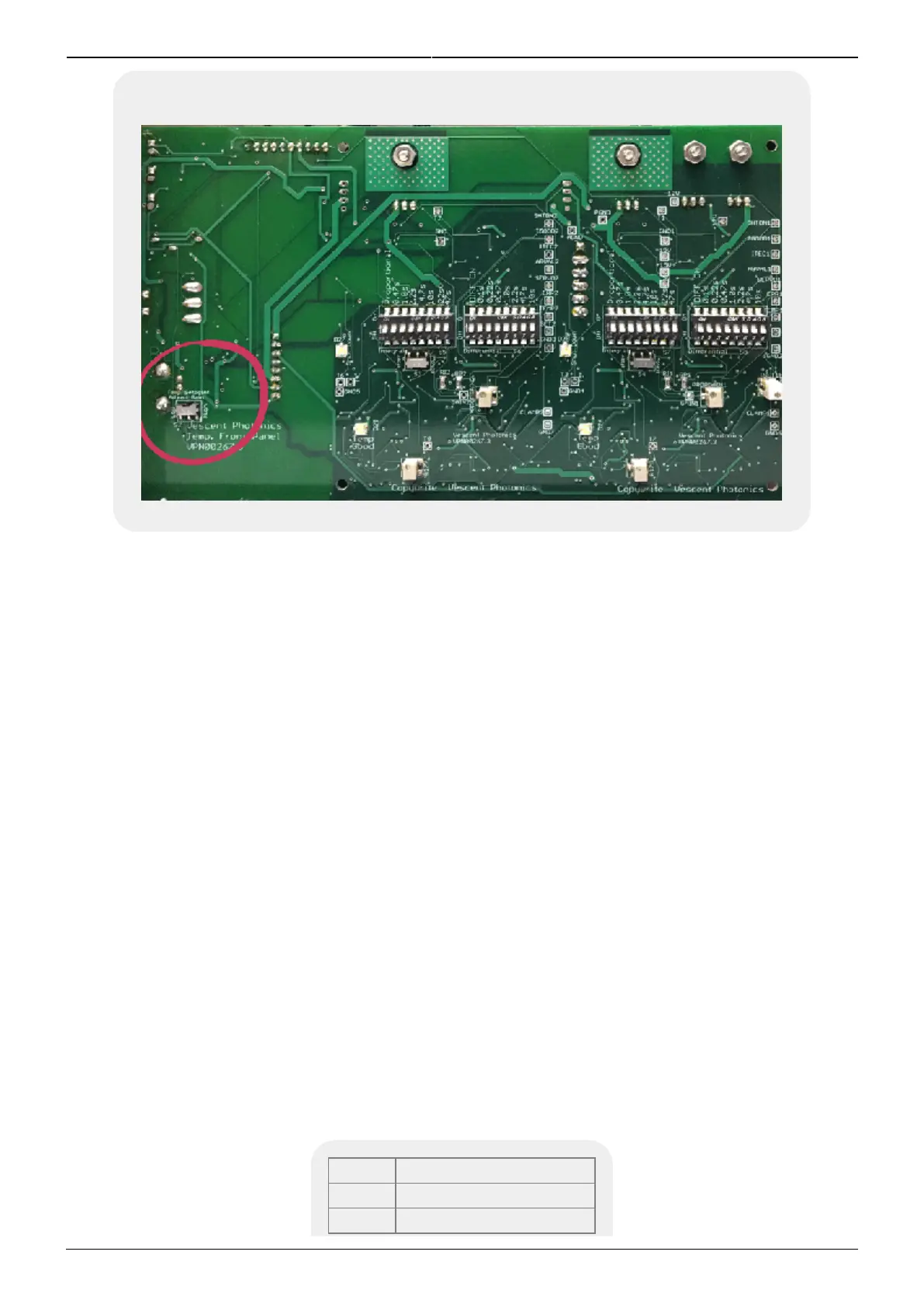 Fig. 3: Temp control board with T2 Temp Servo Input gain switch circled
