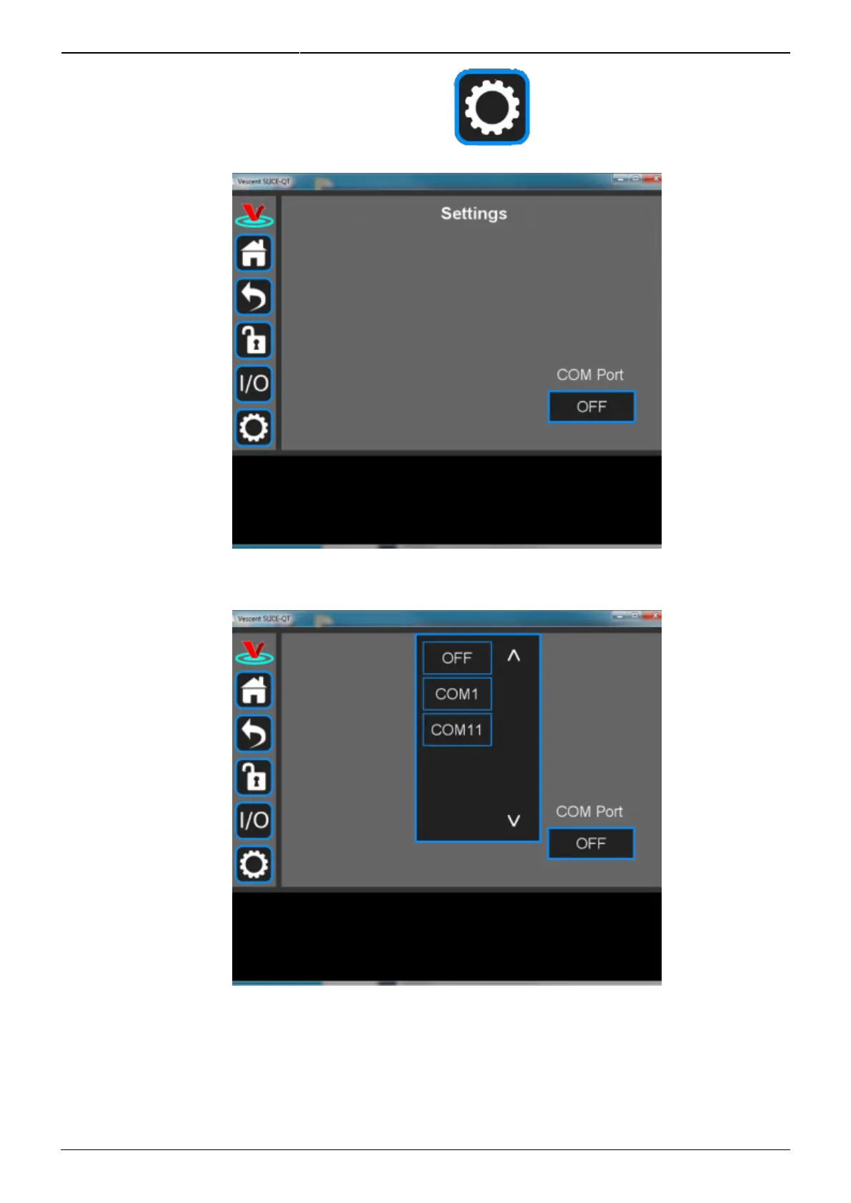 Click on the OFF button below COM Port. You should see a menu similar to the one shown7.