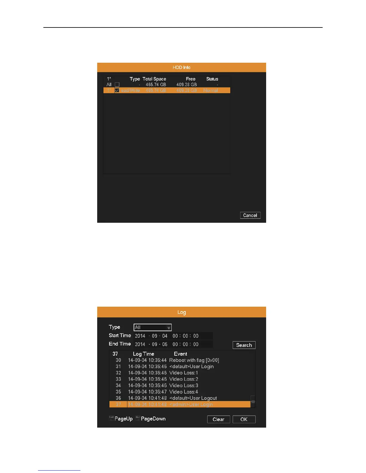 list. Press Page Up or Page Down button to look up and press Clear button to clear all the log information.