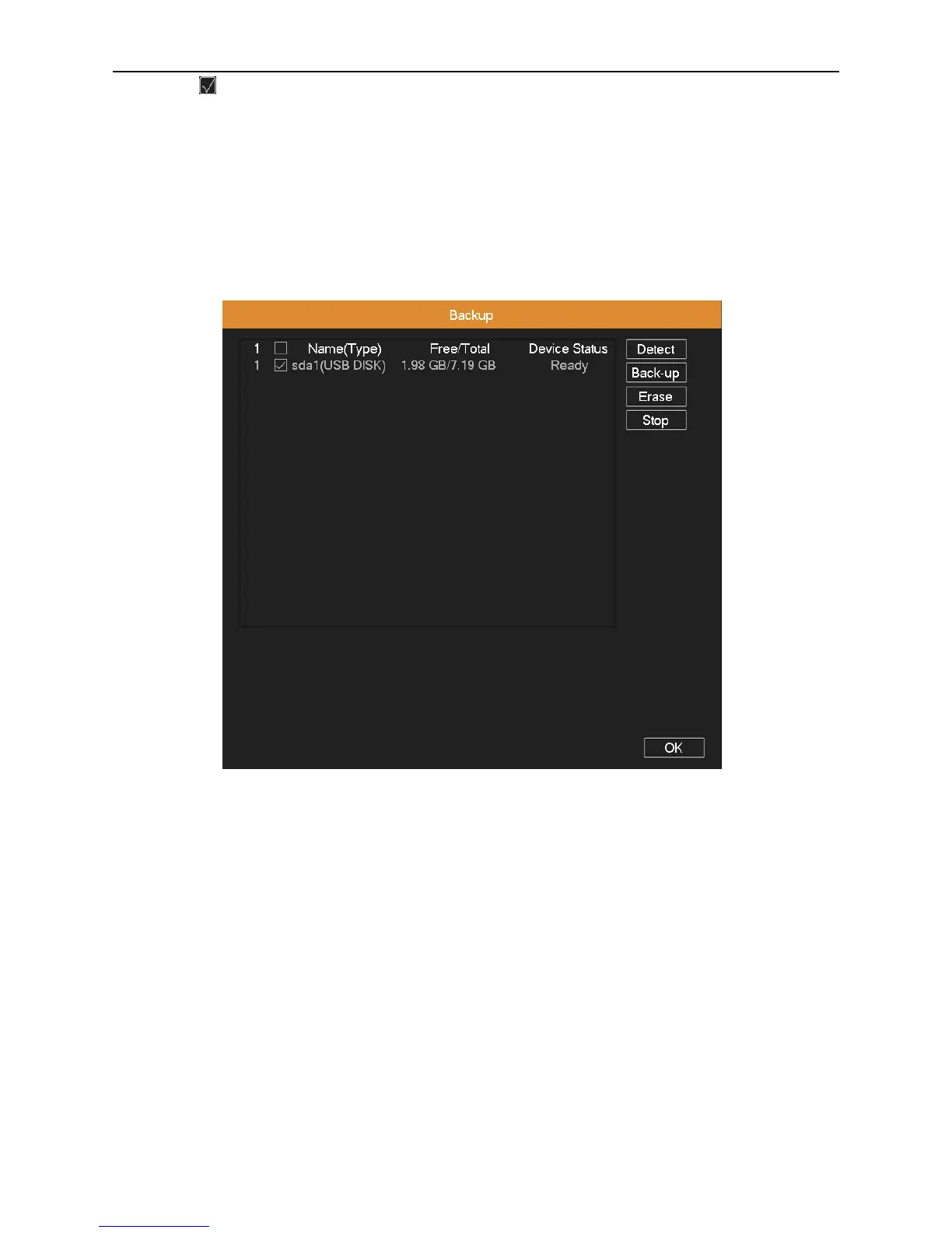 Detect: Detect the storage device connected with the DVR such as hard disk or universal disk.