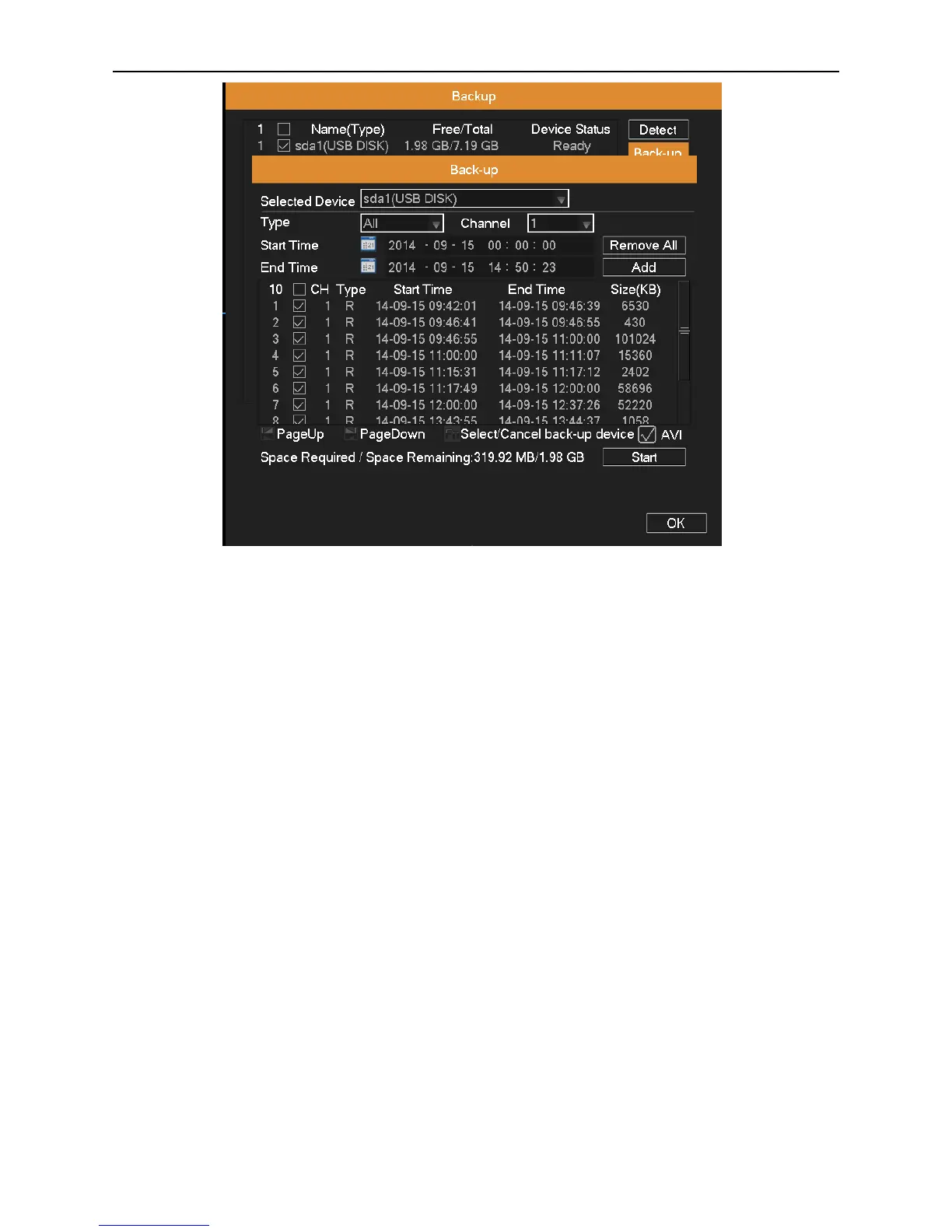Channel: Choose a channel or all channels which need to back up data.