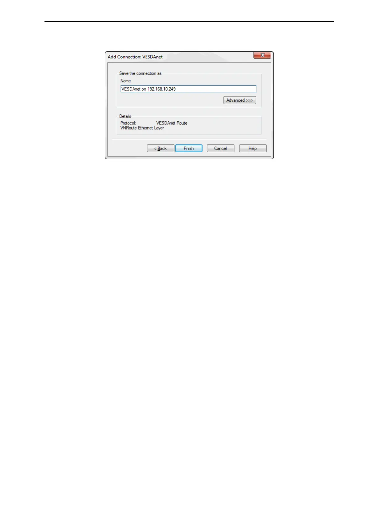 3. Enter a unique name for the Connection or accept the pre-generated name, then select Finish
