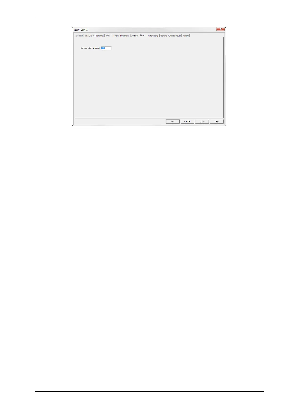 Service Interval (days): The time period after a new filter is installed at which non urgent fault "Filter smoke-