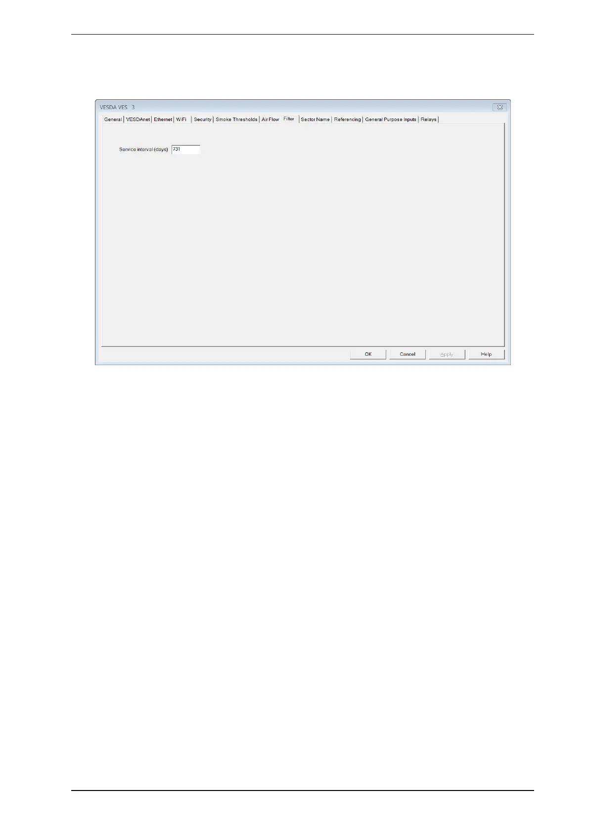 Service Interval (days): The time period after a new filter is installed at which non urgent fault "Filter smoke-