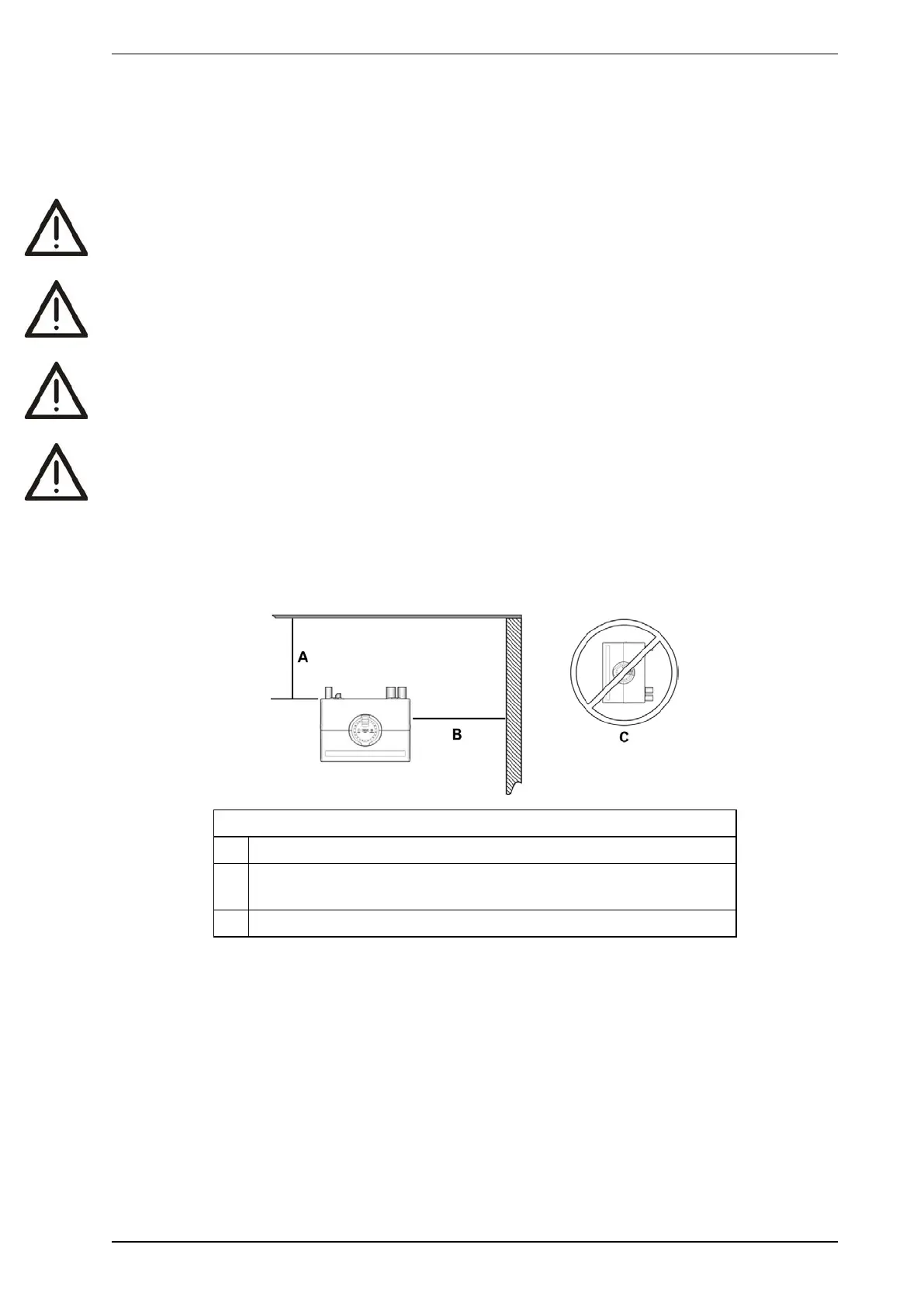 B Min. 500 mm (20 in.) from a wall or obstruction to allow access to the