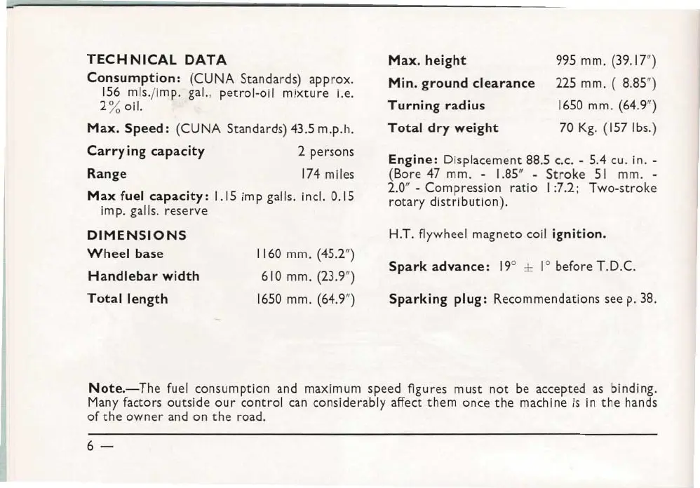 Note.- The fuel consumption and maximum speed figures must not be accepted as binding.