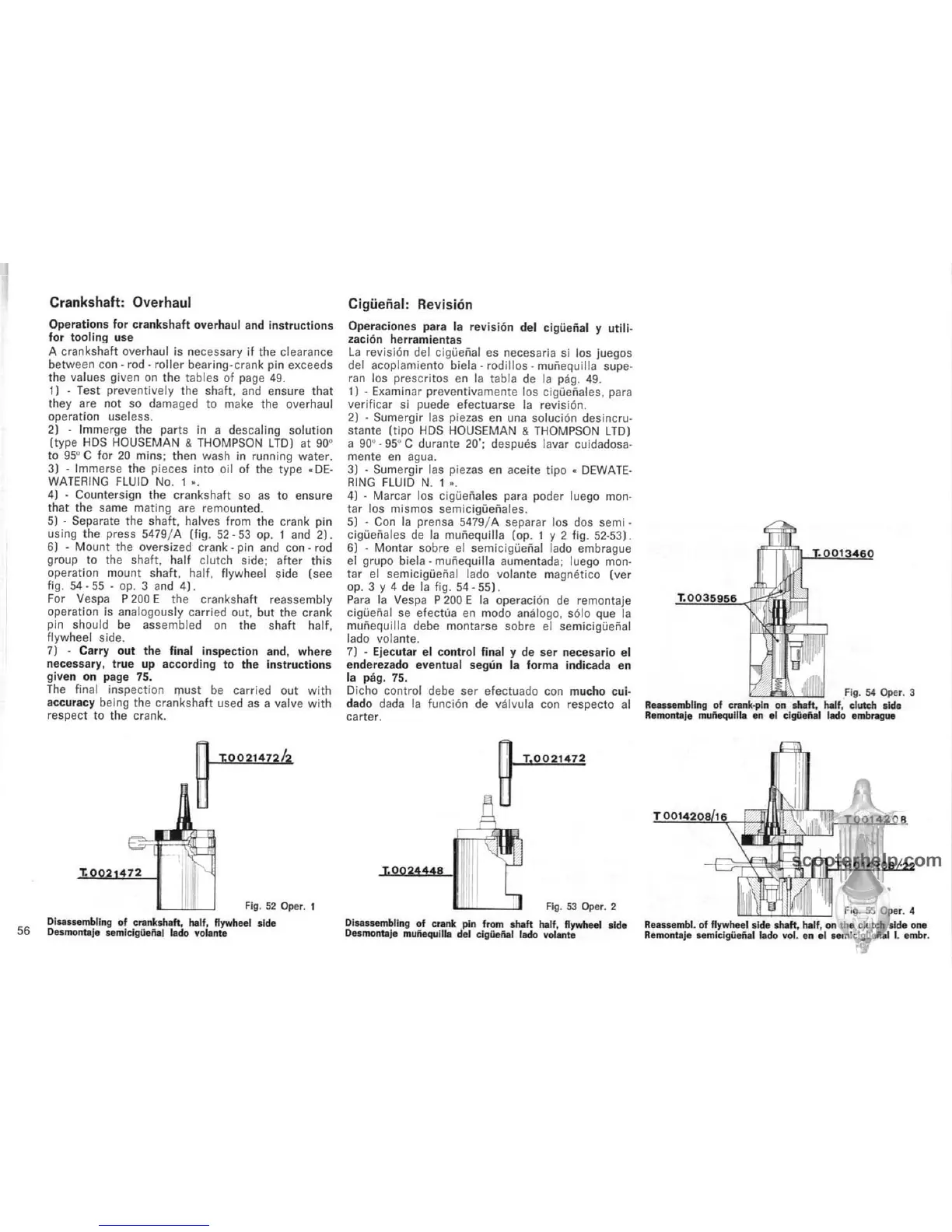 Vespa P 200 E - Crankshaft: Overhaul; Operations for crankshaft overhaul and instructions for tooling use