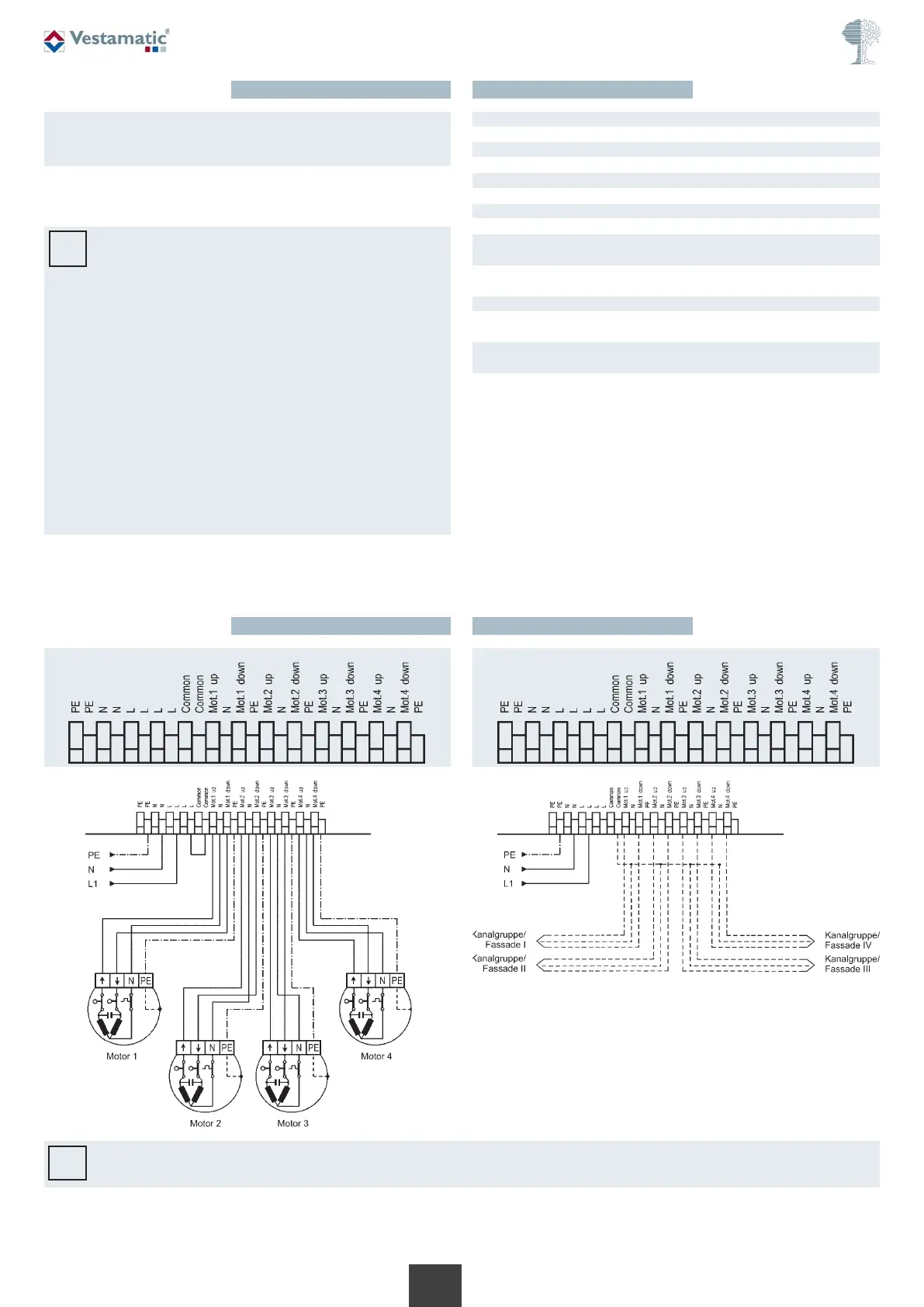 Bei den Versionen M 2C Wired und RC entfallen die Anschlussklemmen Mot. 3 up bis Mot. 4 down.