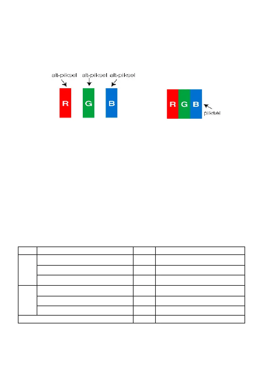 Tip 1 : Sürekli yanan alt-piksel (kırmızı, yeşil veya mavi olabilir)