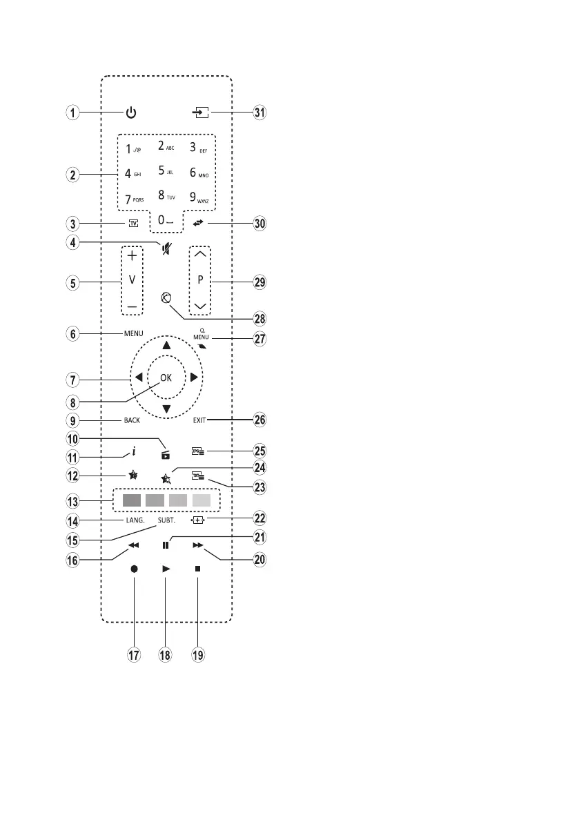 1. Standby: Switches On / O the TV