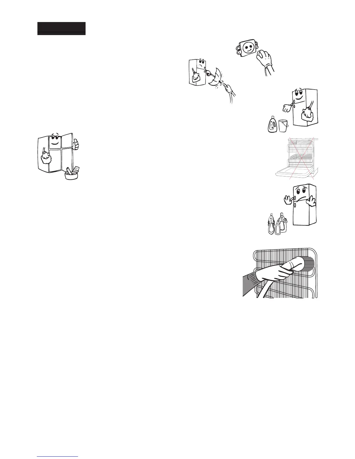 • Make sure to unplug the fridge before starting to clean it.