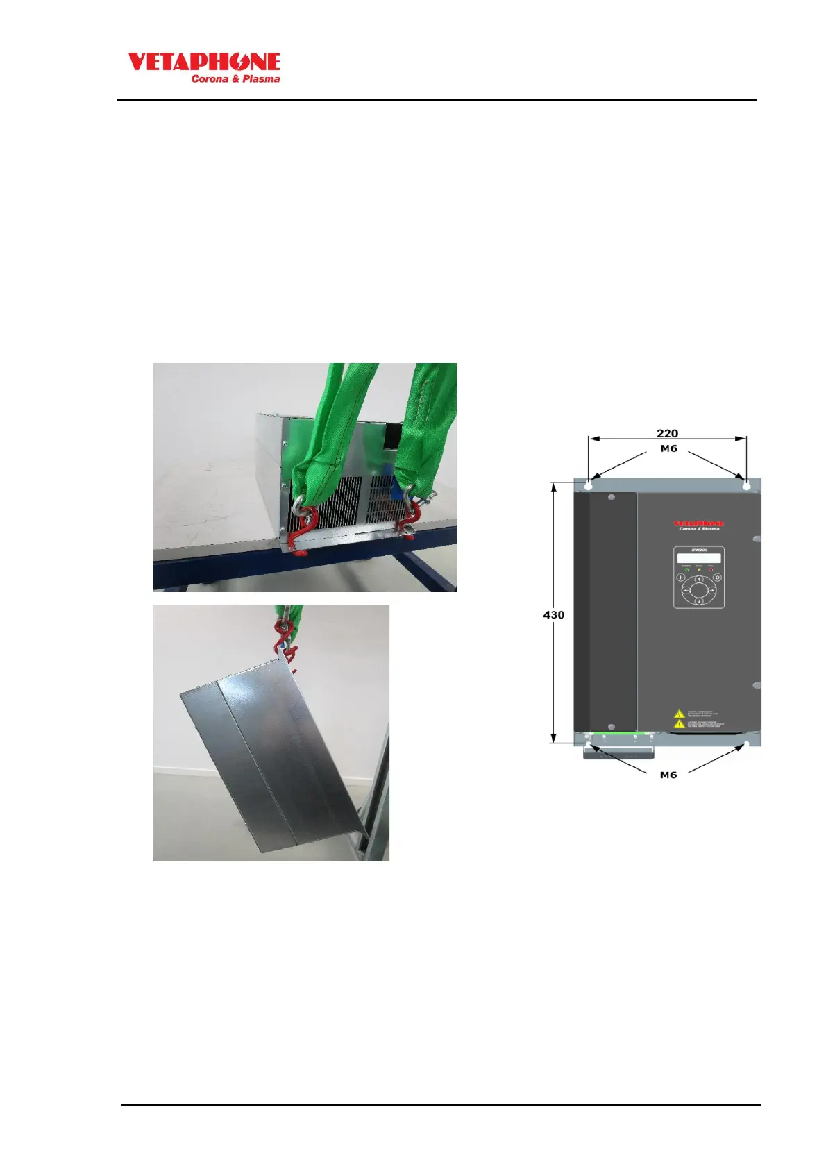 • Attach hoist securely to the upper keyholes, using 5-6 mm hooks. Only use hoists and load