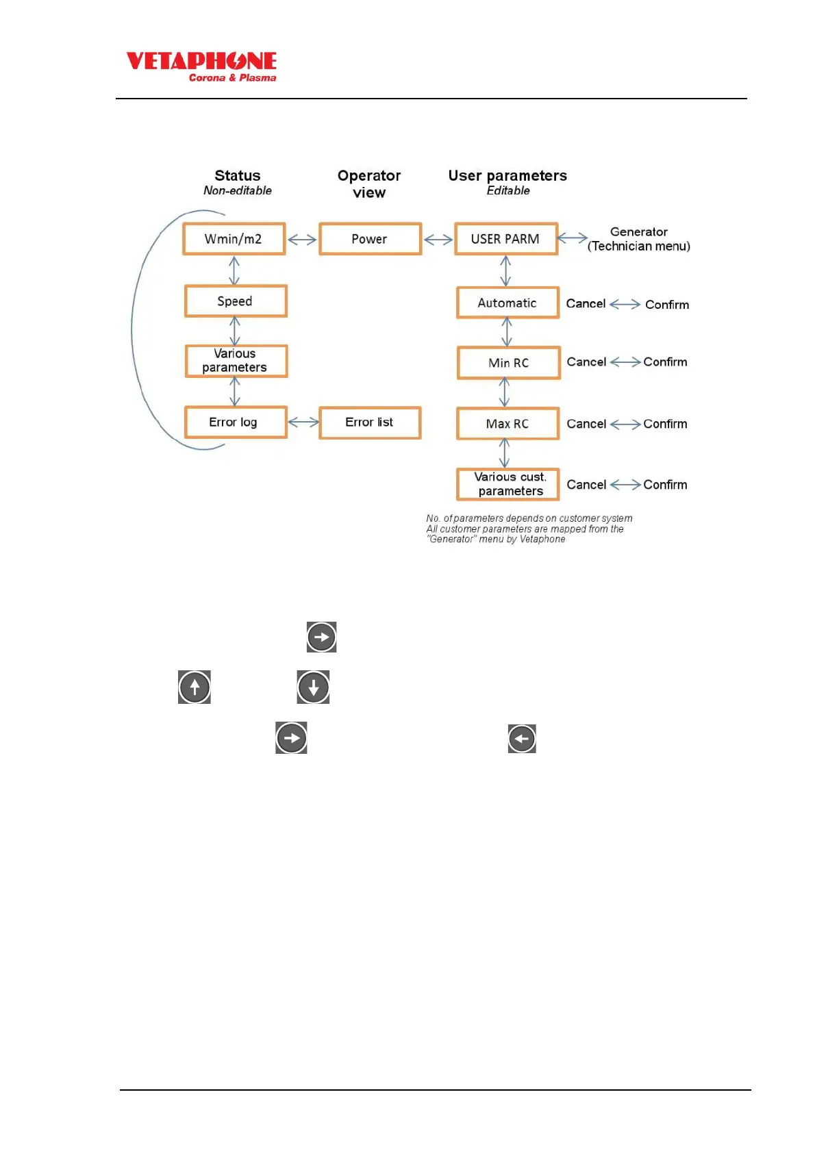 In the User parameters the user can scroll UP or DOWN through the submenus.