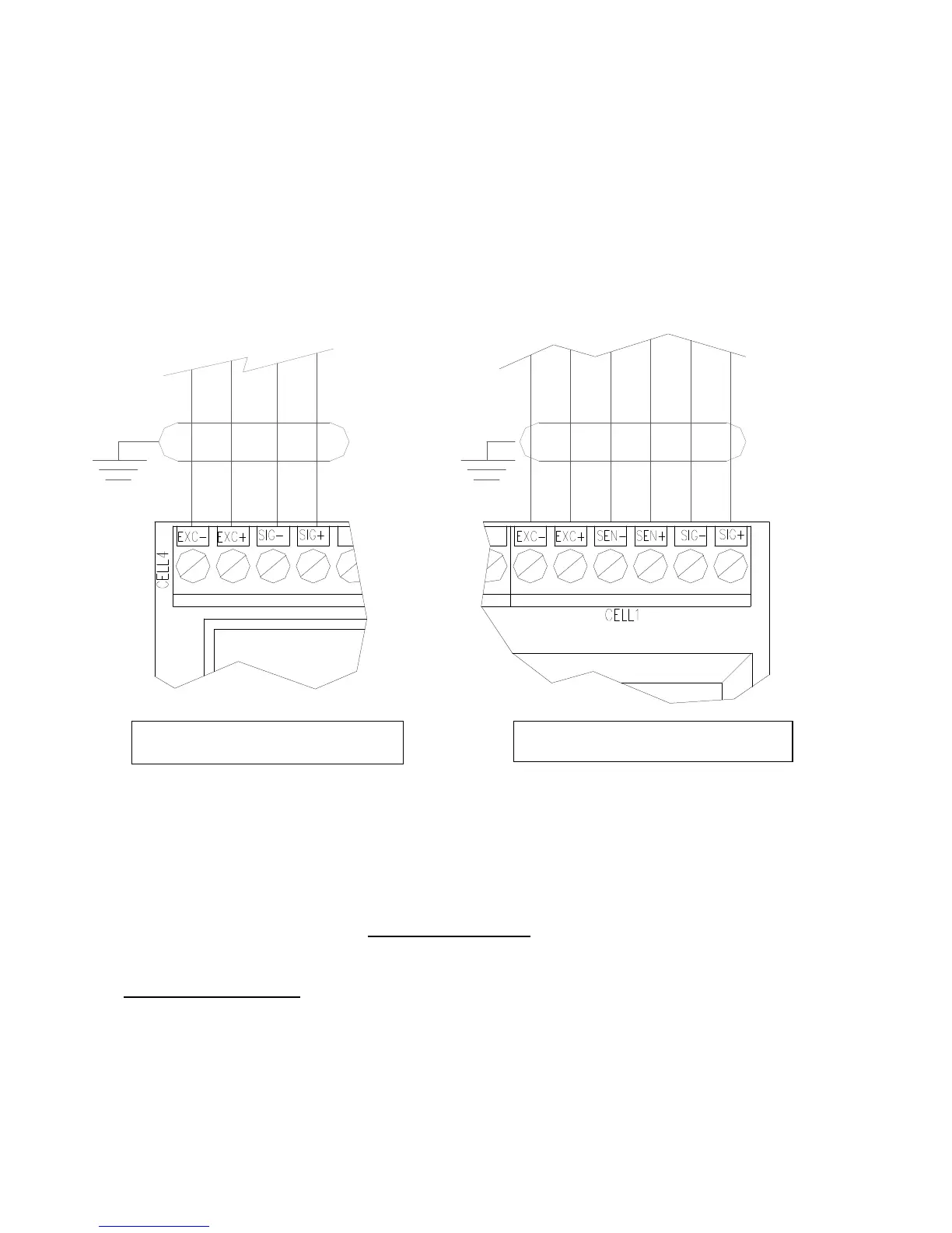 The CELL1 terminal board of the indicator may be connected to the 6-wire load receiver (with use of SENSE),