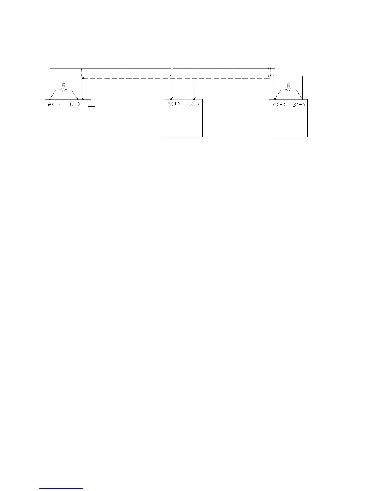 On the RS485 network normally one connects 2 termination resistances of 120 ohm (shown with "R" in figure 1),