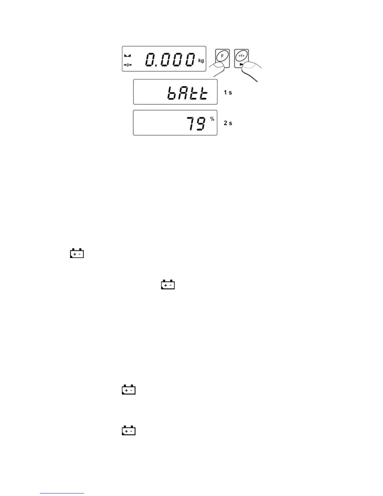 The symbol (bat low) switches on when the voltage level drops to 18%