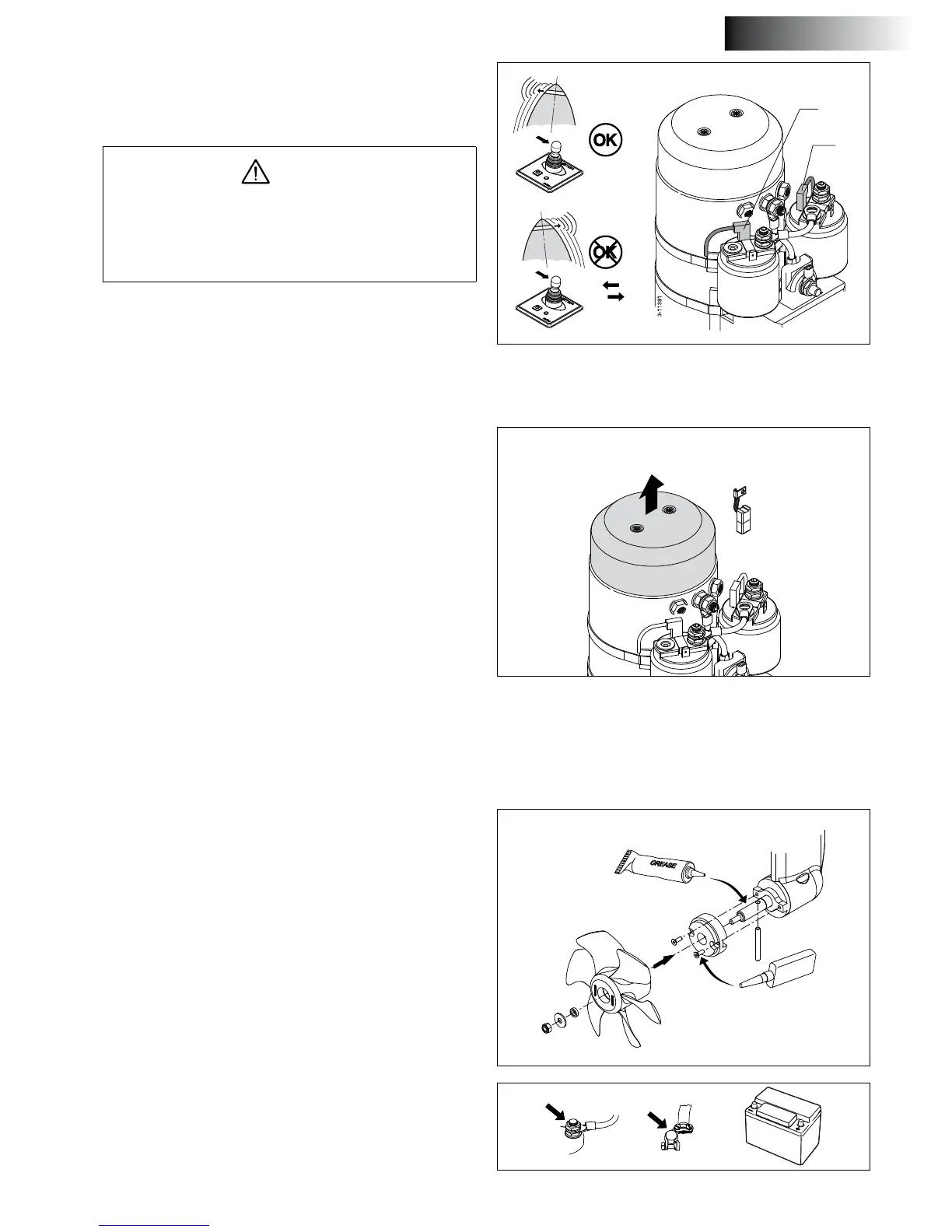 Clean the propeller shaft, grease with ‘outboard gear grease’ and •