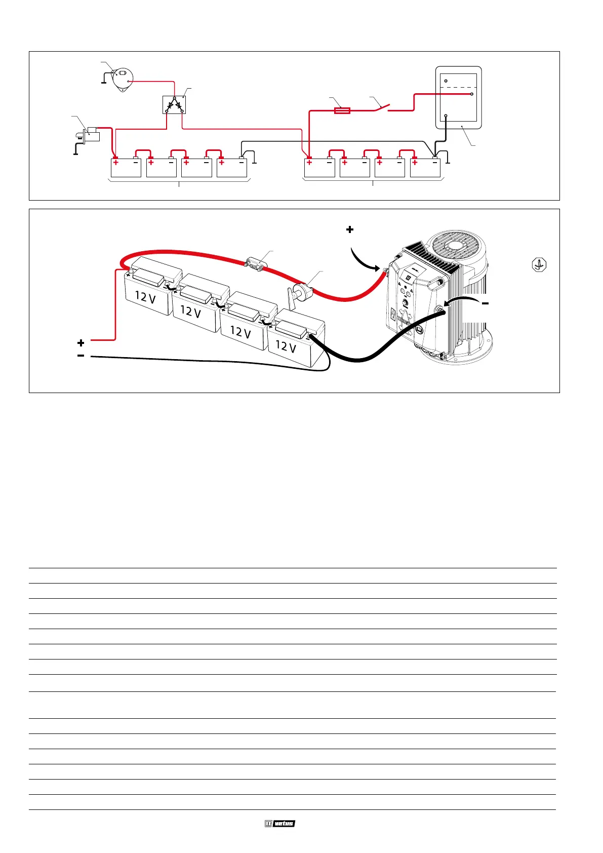 Aansluiting accu's en laadcircuit bij een 48 Volt boordnet