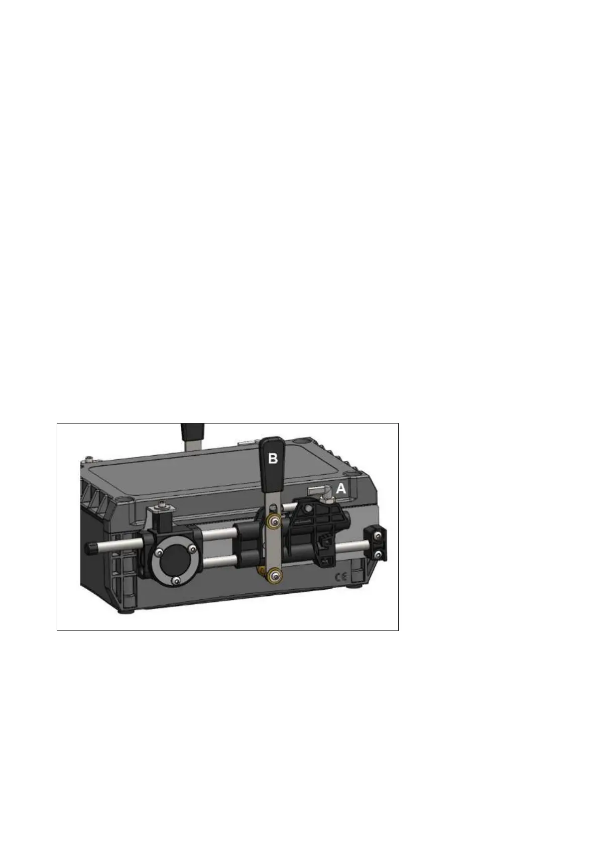 2. Place the emergency lever “B” in the centre of stroke and move it back and forward until you hear a “click”.