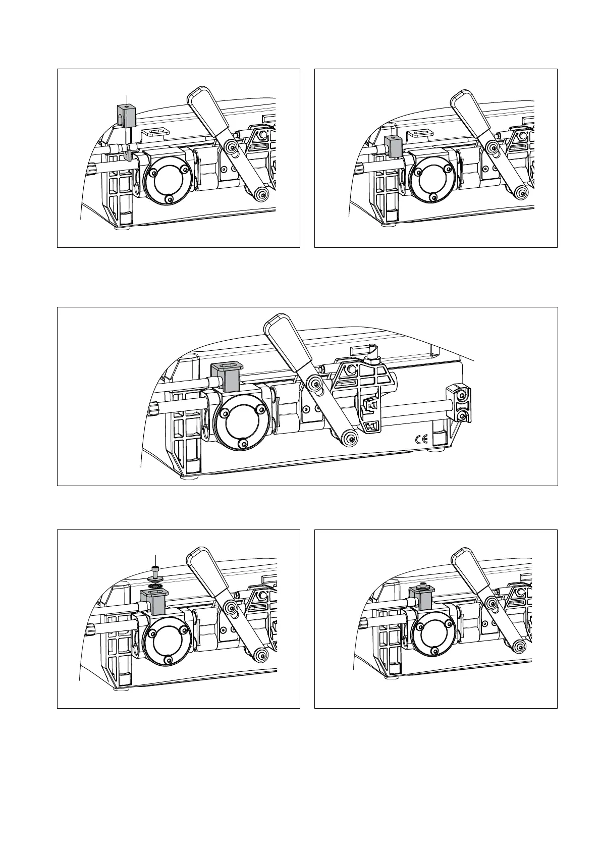 4. Insert the groove of the push-pull cable fitting between the blade (g) and the black aluminium cube (e).