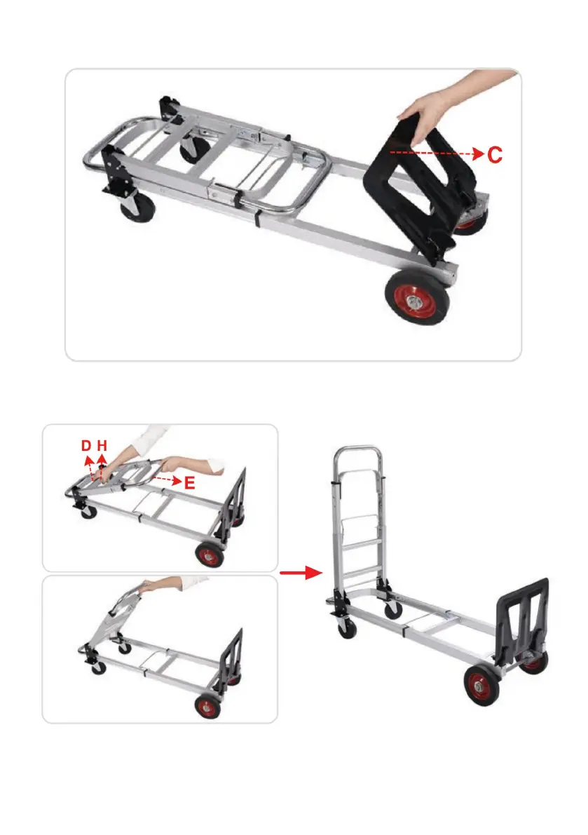 4. Hold the D and H parts with your right hand, and hold the E handle with