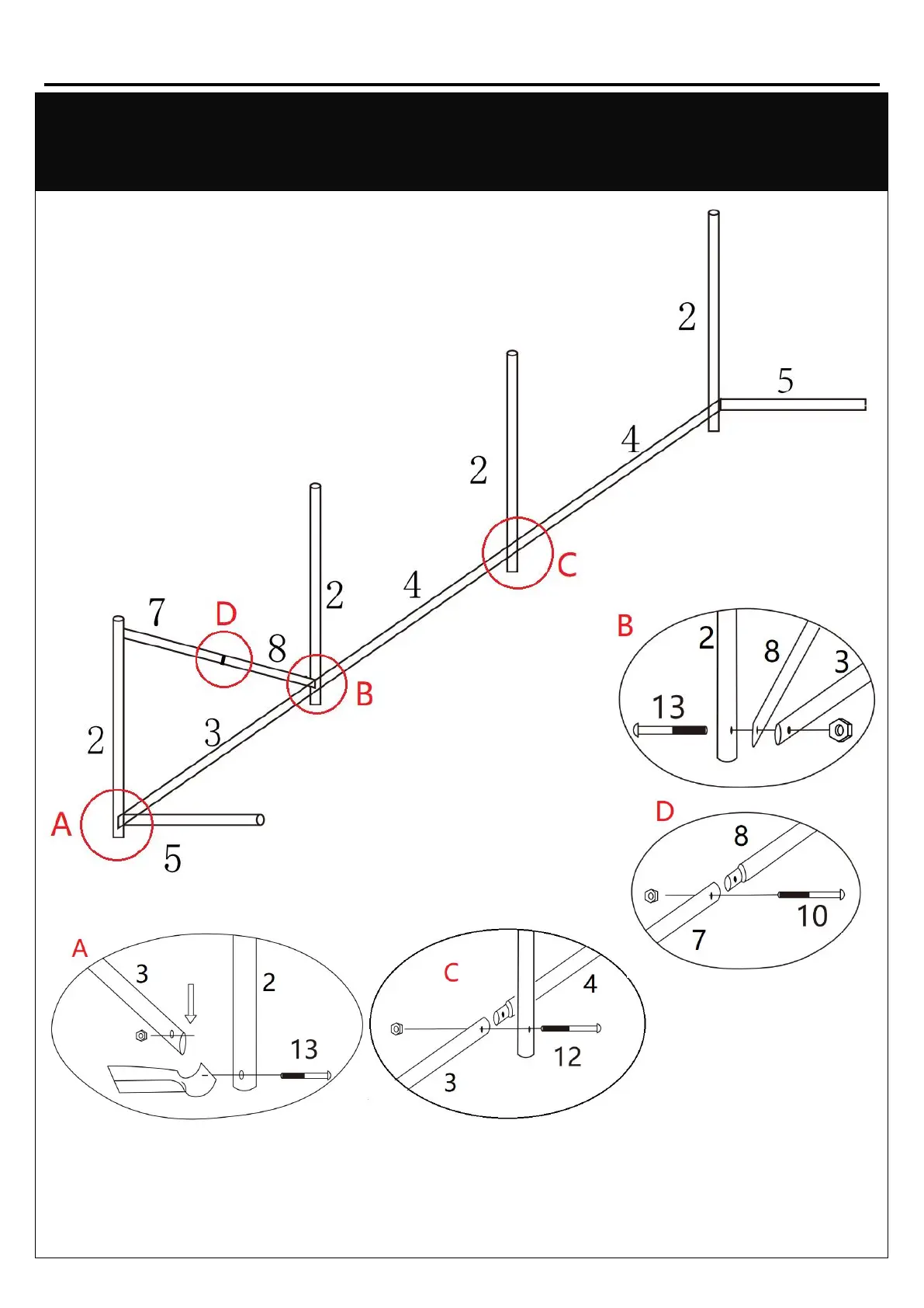 2. Lock the pole with screws(13*3pcs)(12*1pcs)(10*1pcs);