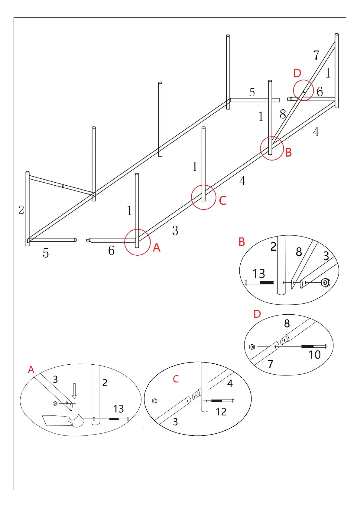 2. Lock the pole with screws(13*3pcs)(12*1pcs)(10*1pcs);
