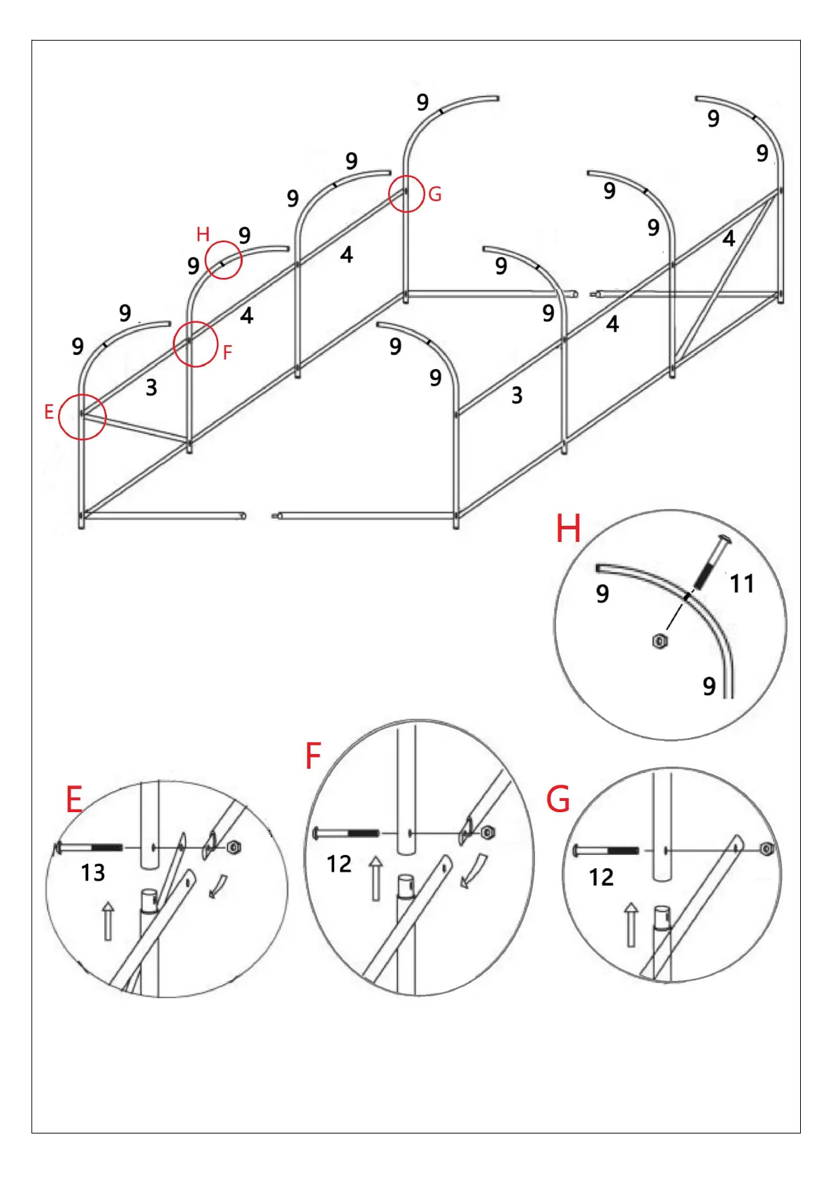 2. Lock the pole with screws(13*2pcs;12*6pcs;11*8pcs;);