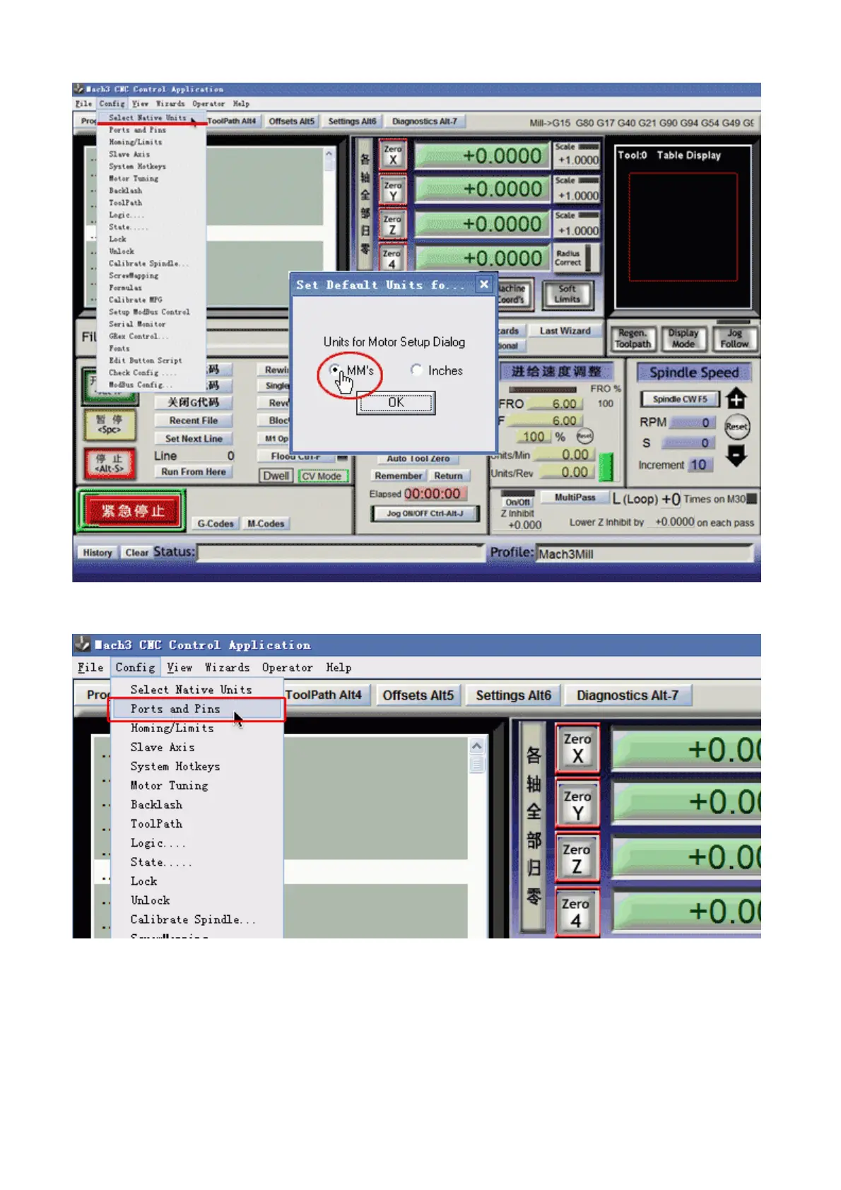3. See as below,open”Config--Ports and Pins” to enter the setup.