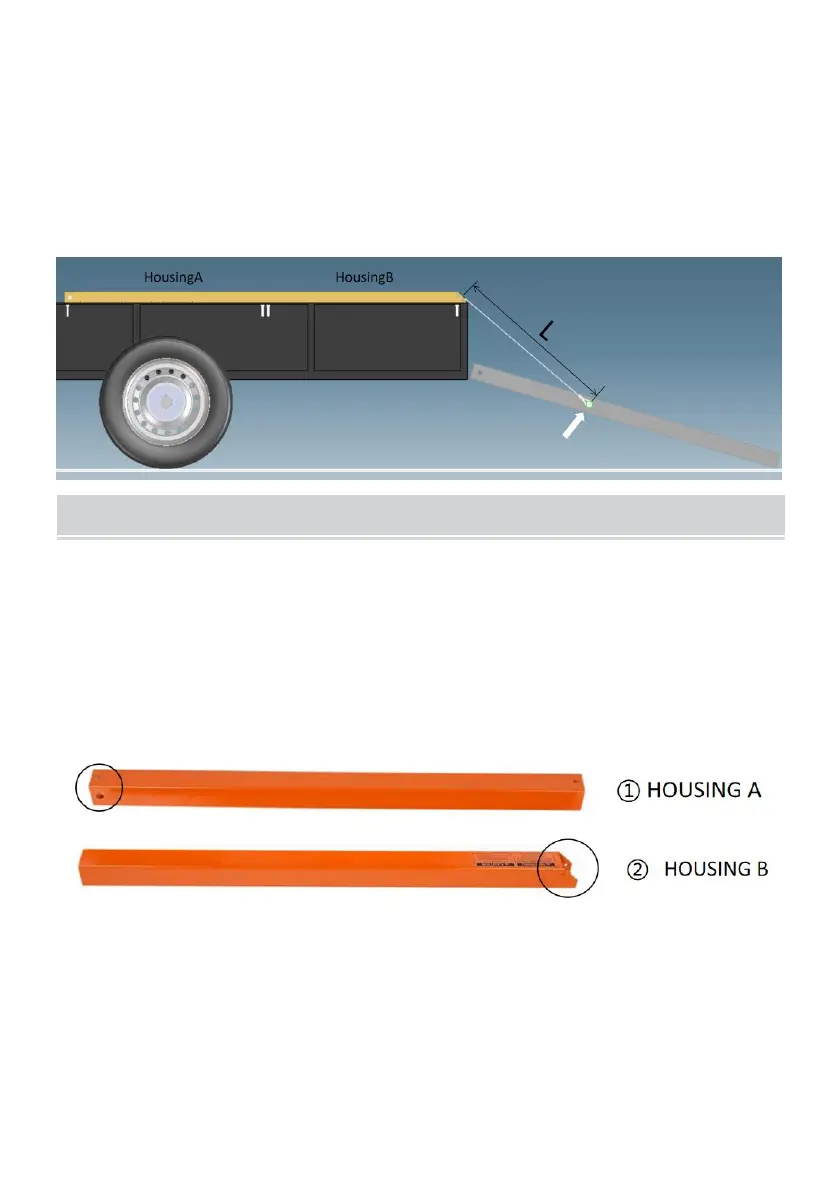 Place and align housing A & housing B on top of the trailer's side rail.