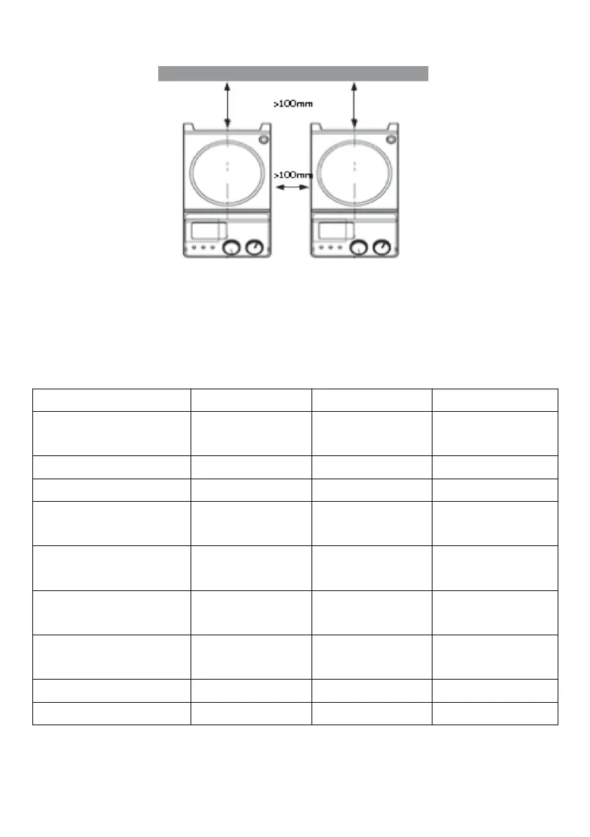 to the rear wall and above the assembly (min. 100 mm).