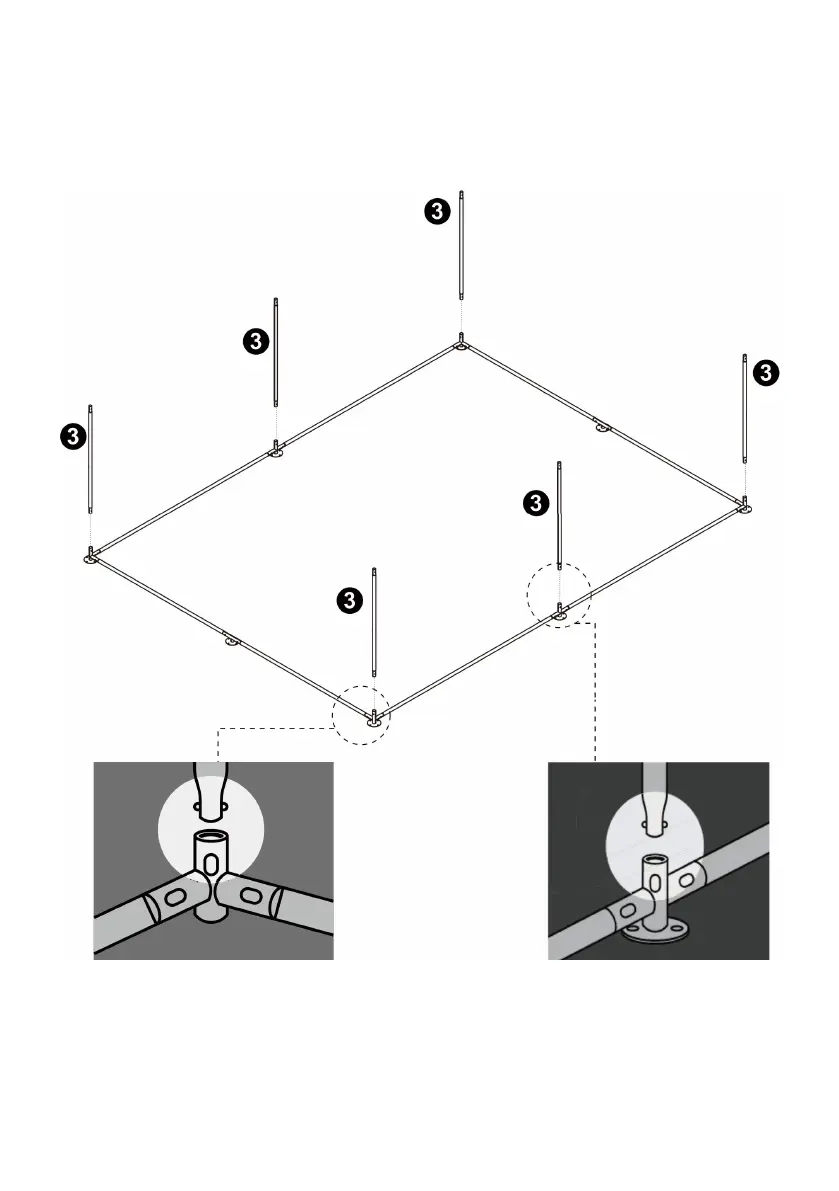 this,please put the plastic connector "G" x4pcs on corner of pole "3" x4pcs
