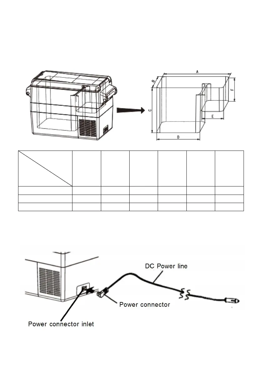 Plug the DC power connector into the inlet of the refrigerator