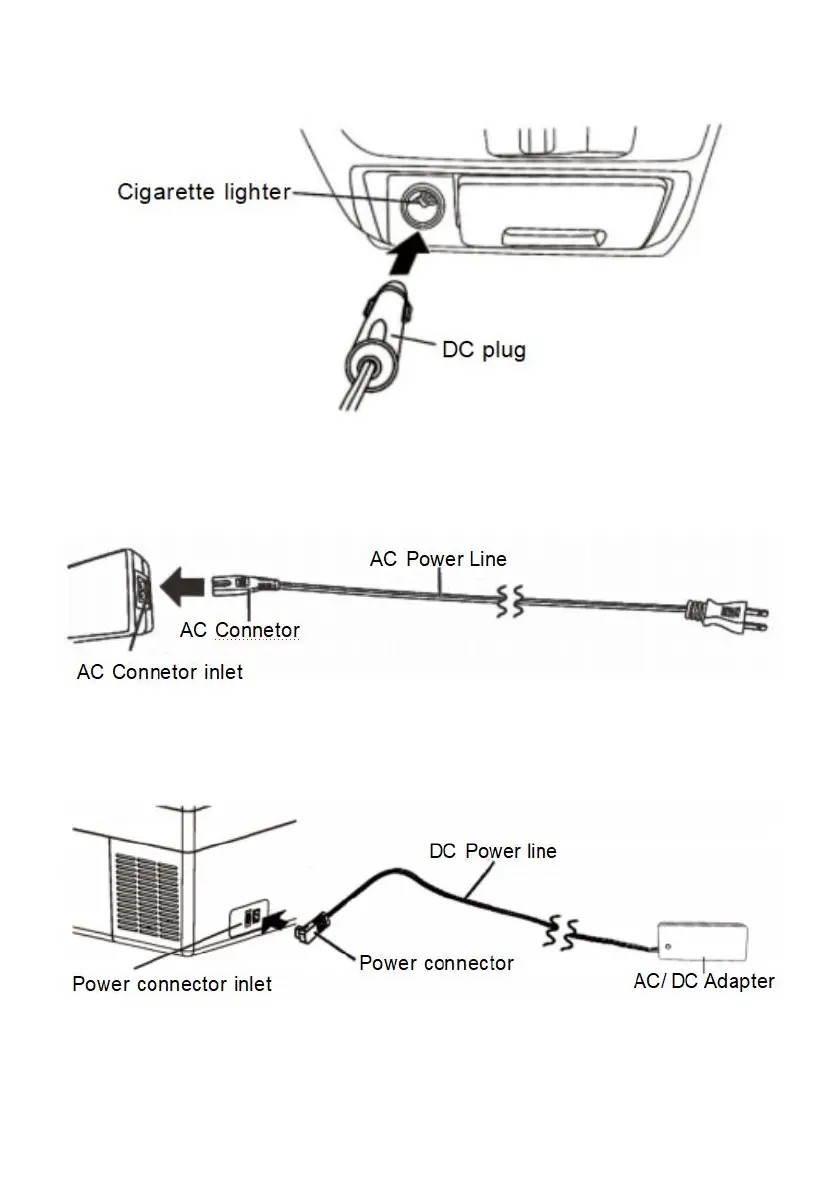 Plug the power connector on the adapter into the inlet of the refrigerator