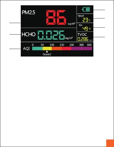 1.PM2.5 display area, showing the current PM2.5