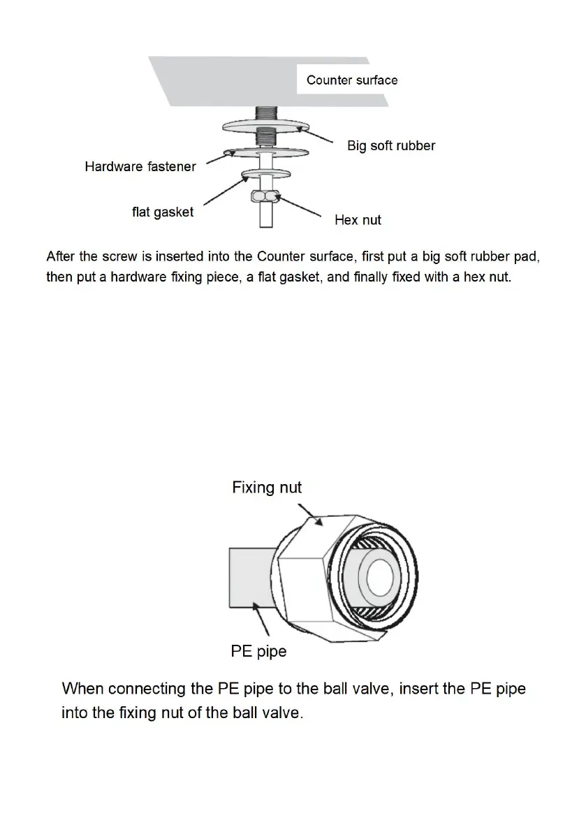PE water pipe (1/4” water pipe) from the three-way ball valve outlet.